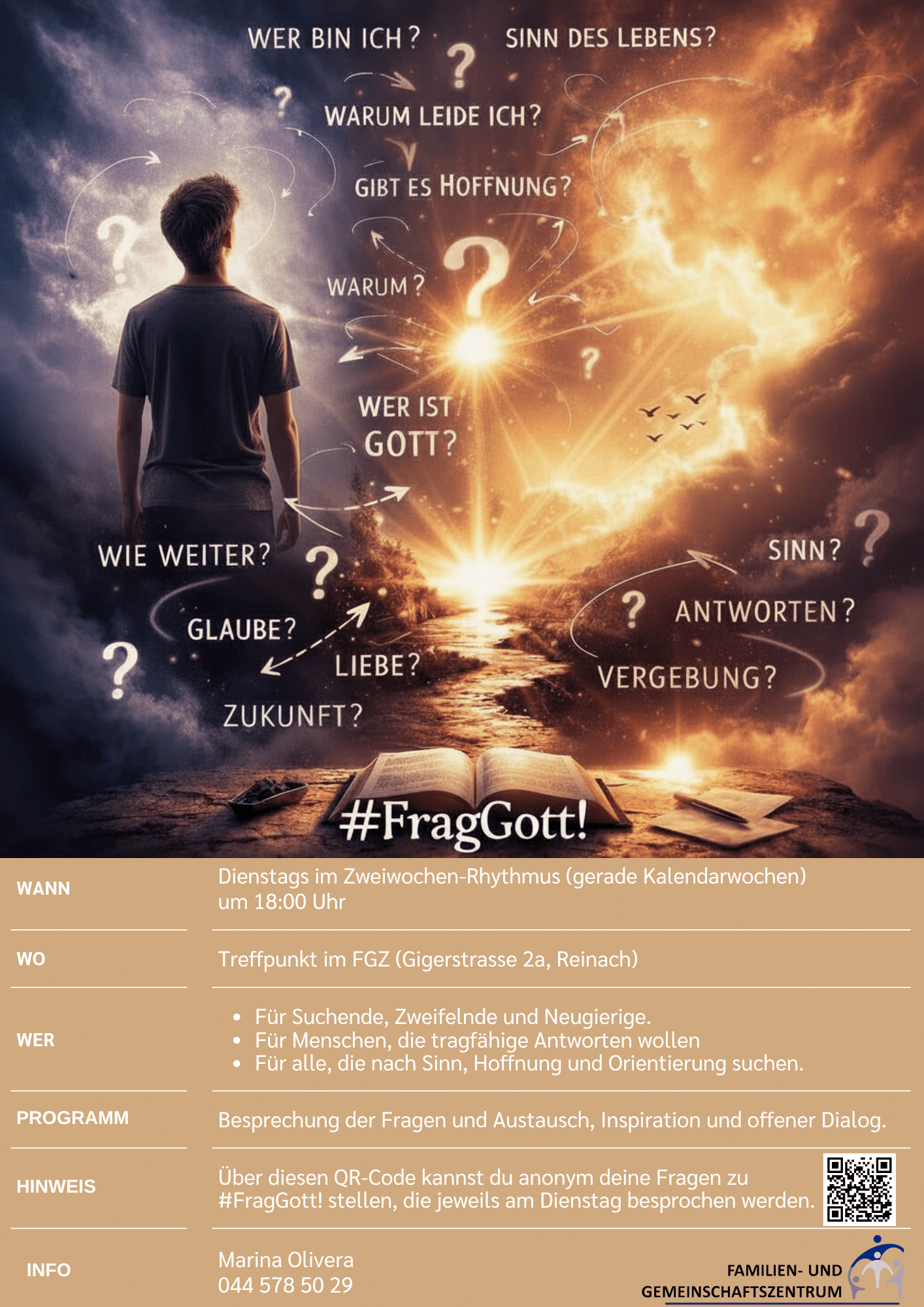 Gemeinsam nehmen wir uns Zeit für Austausch, Inspiration und offene Gespräche über die großen Fragen des Lebens und des Glaubens. In einer respektvollen und offenen Atmosphäre werden die Fragen behandelt.